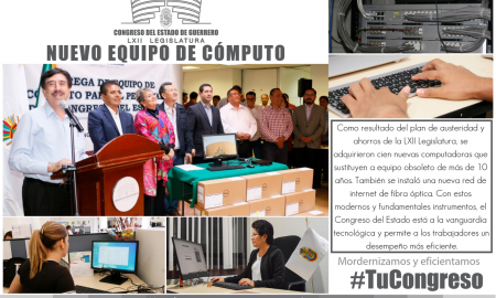 Como resultado del plan de austeridad y ahorros de la LXII Legislatura, se adquirieron 100 nuevas computadoras que sustituyen a equipos obsoleto...